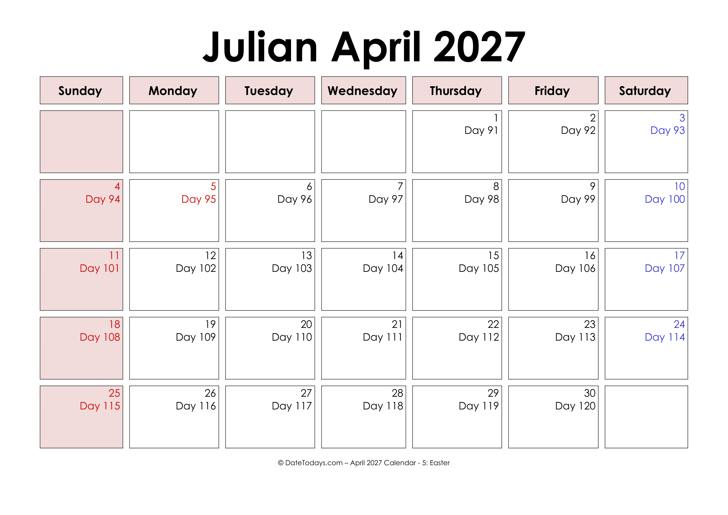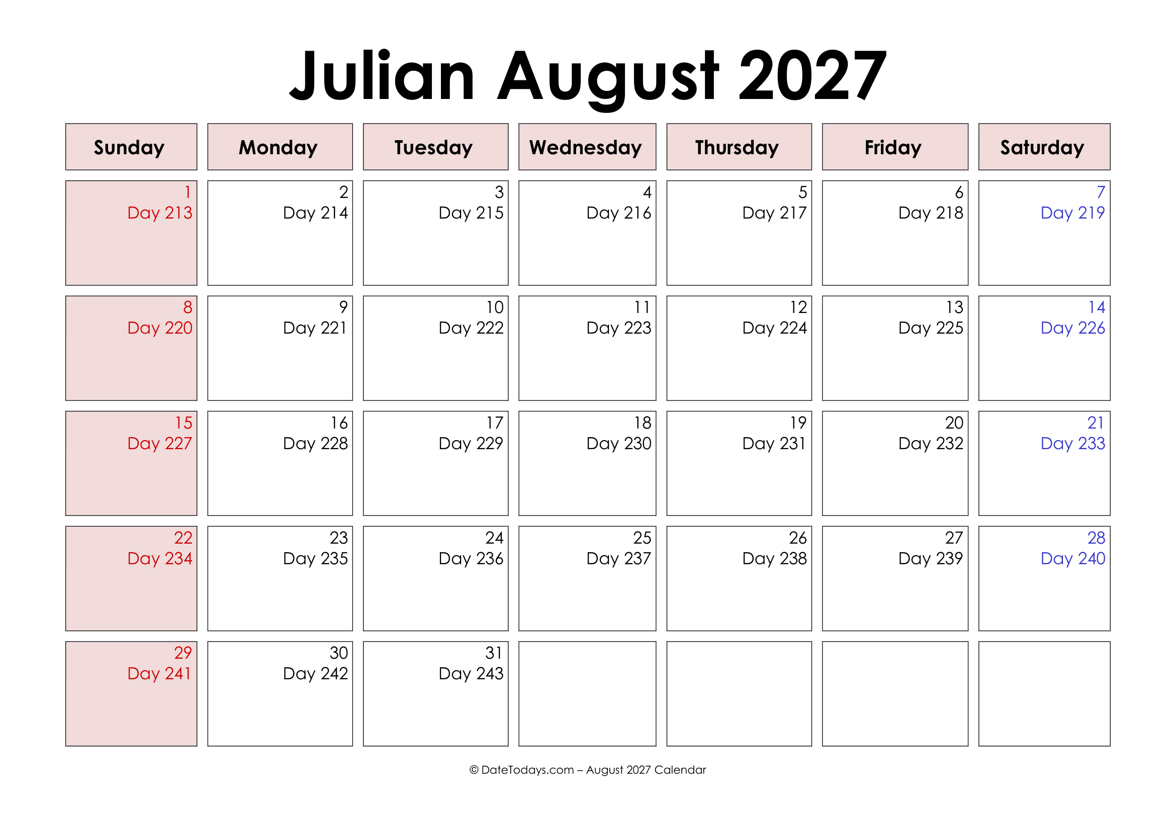 Julian dates (abbreviated JD) are simply a constant count of days and fractions. The Julian calendar is named after Julius Caesar, who initiated the idea in Ancient Rome around 46 BC. The Julian calendar decides the date that is based on the movement of the earth around the sun (which means it is a solar calendar). Printable Julian Date Calendar 2027 basically includes 365 days in most years, but every 4 years, it too includes a leap year that has 366 days. During certain times in history, the Julian calendar was called the “Old Style” calendar.