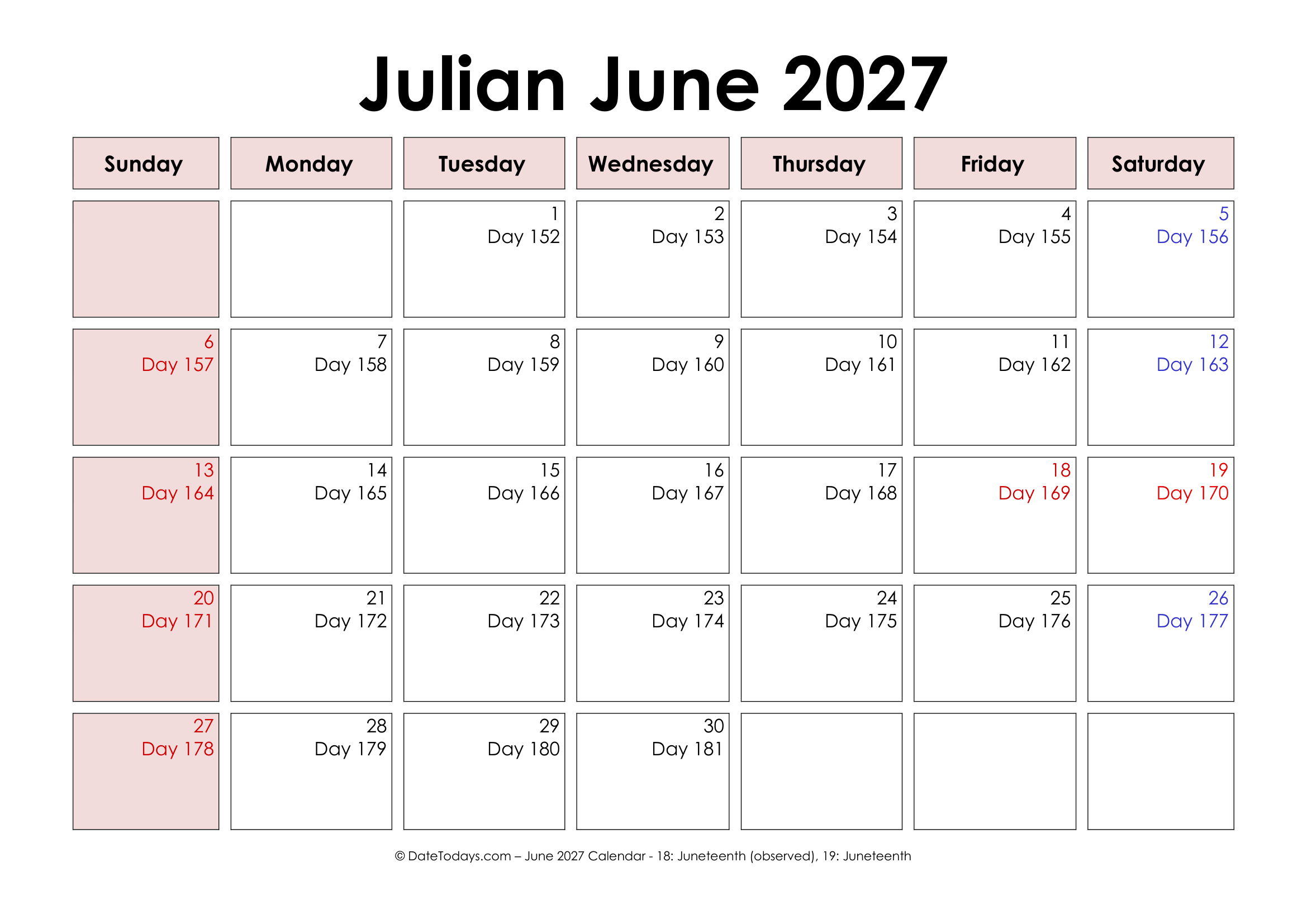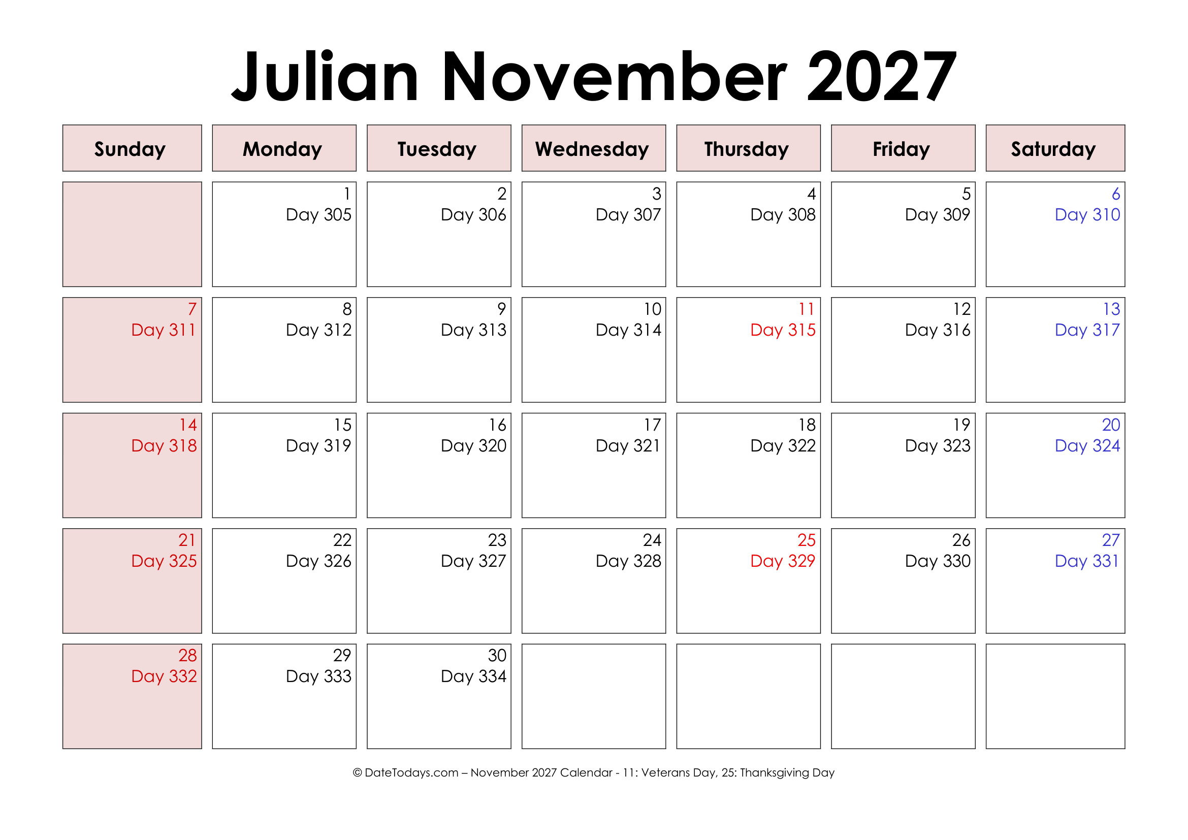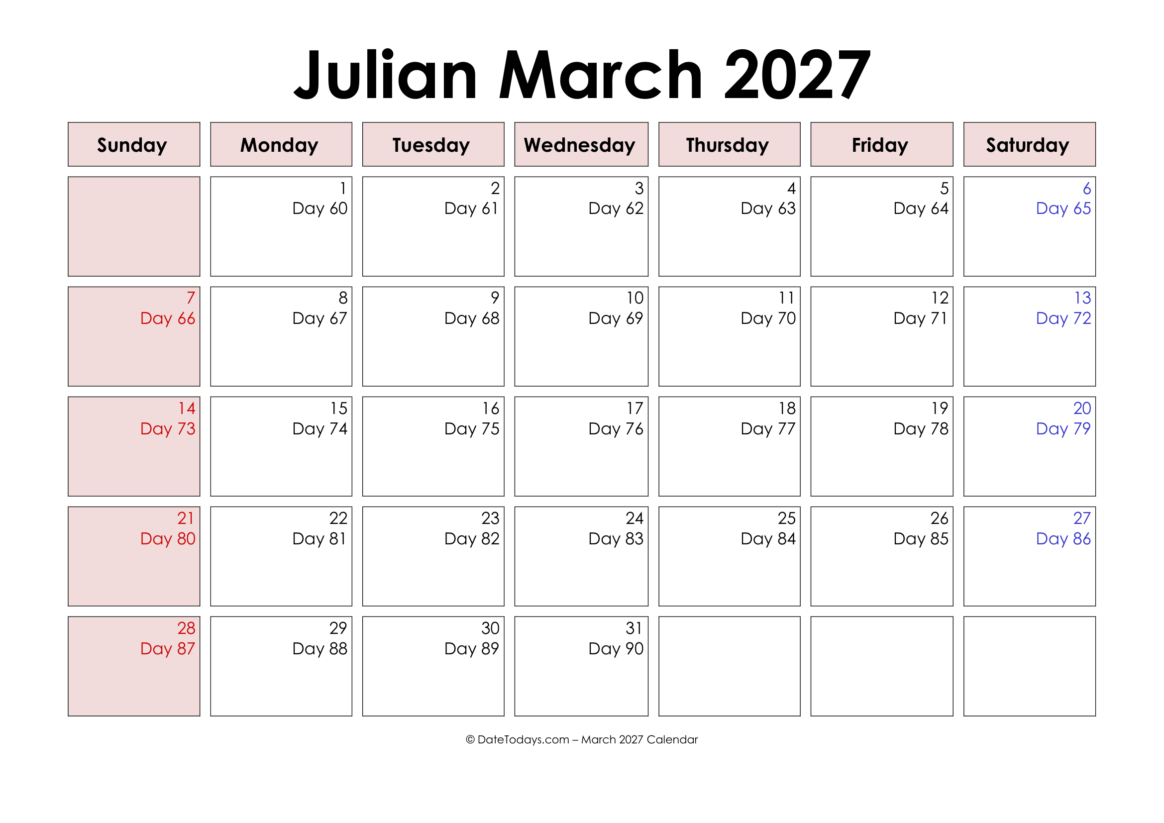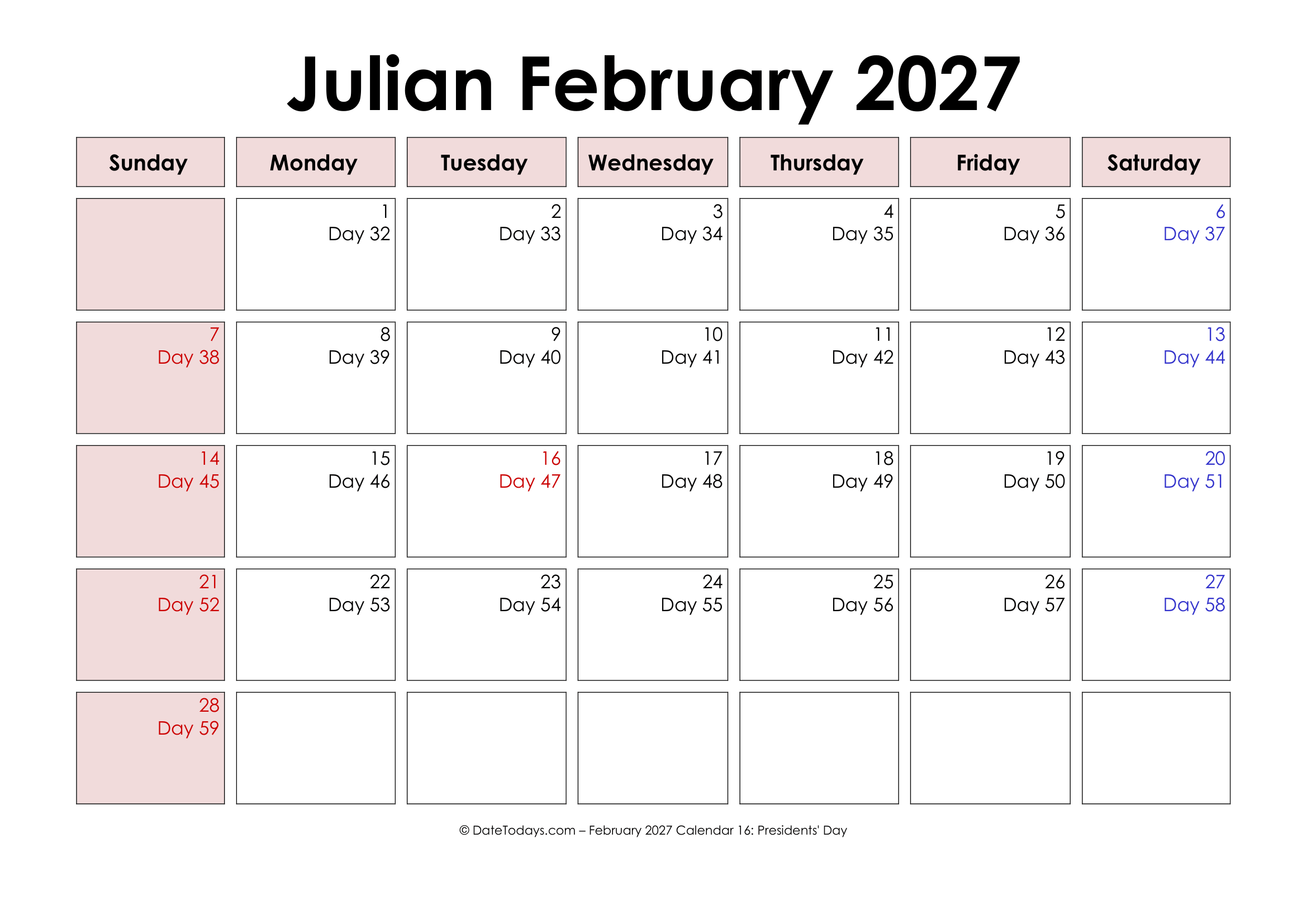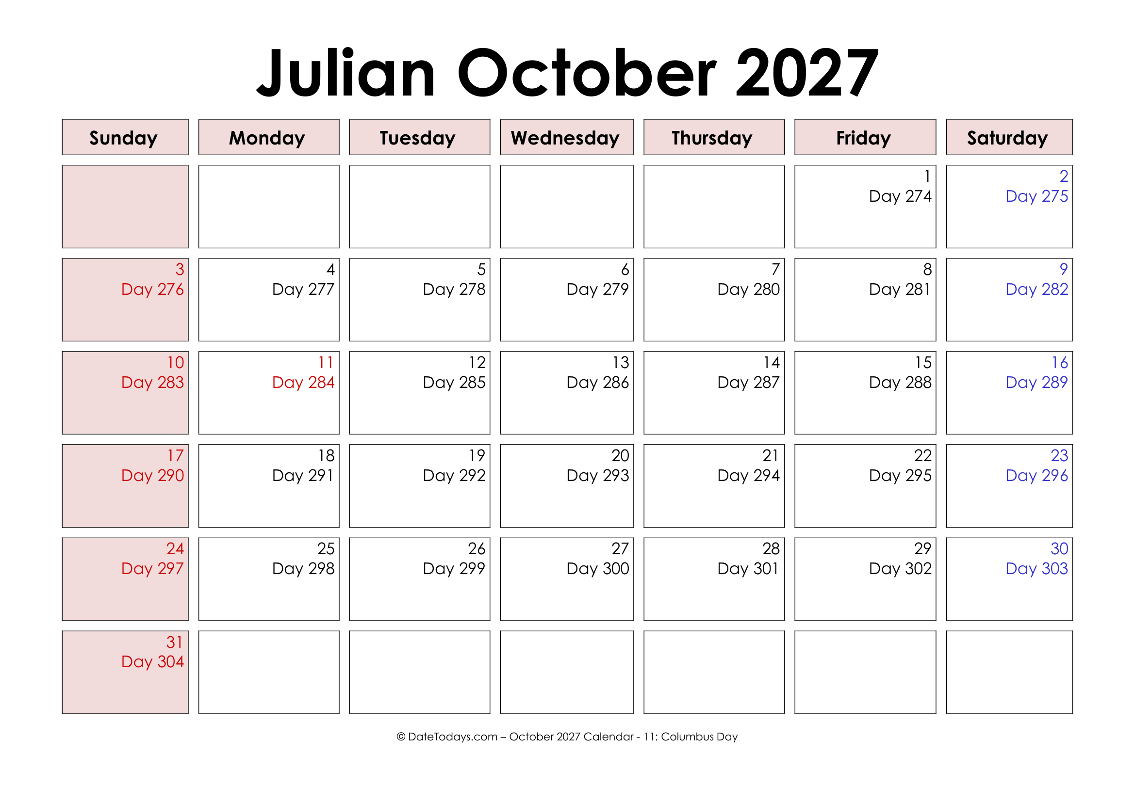 Key Features and Characteristics of Printable Julian Date Calendar 2027 are: