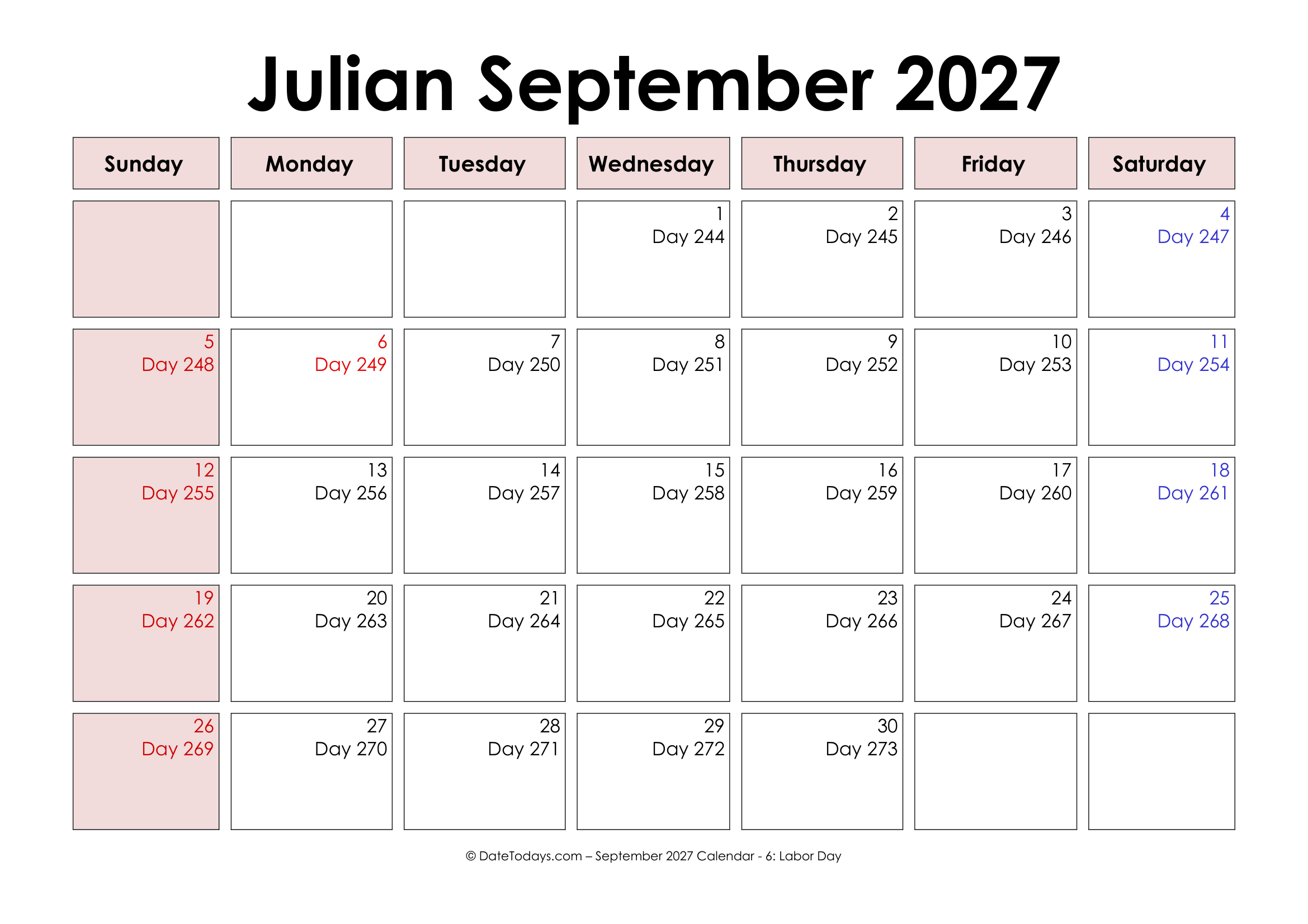 Julian September 2027 Calendar