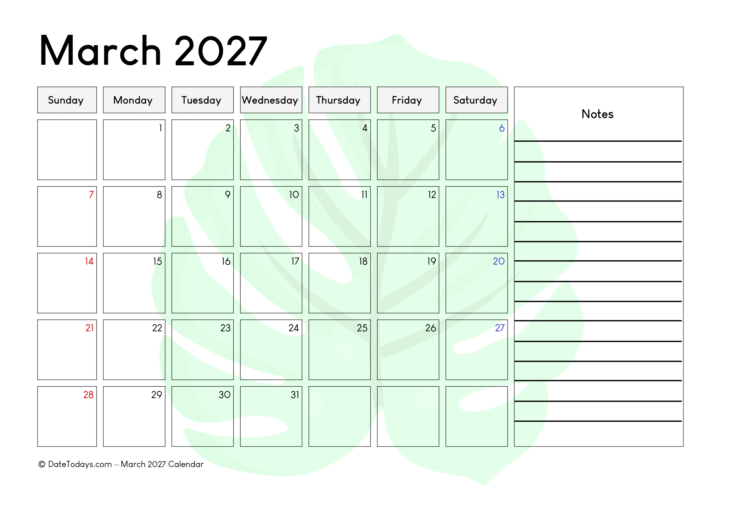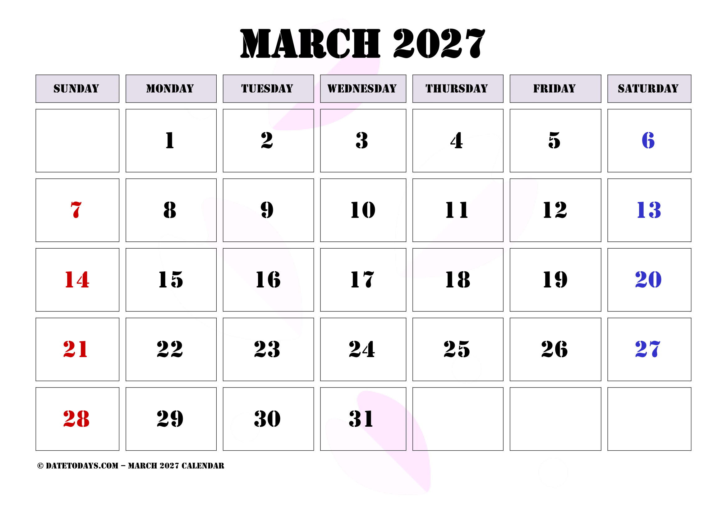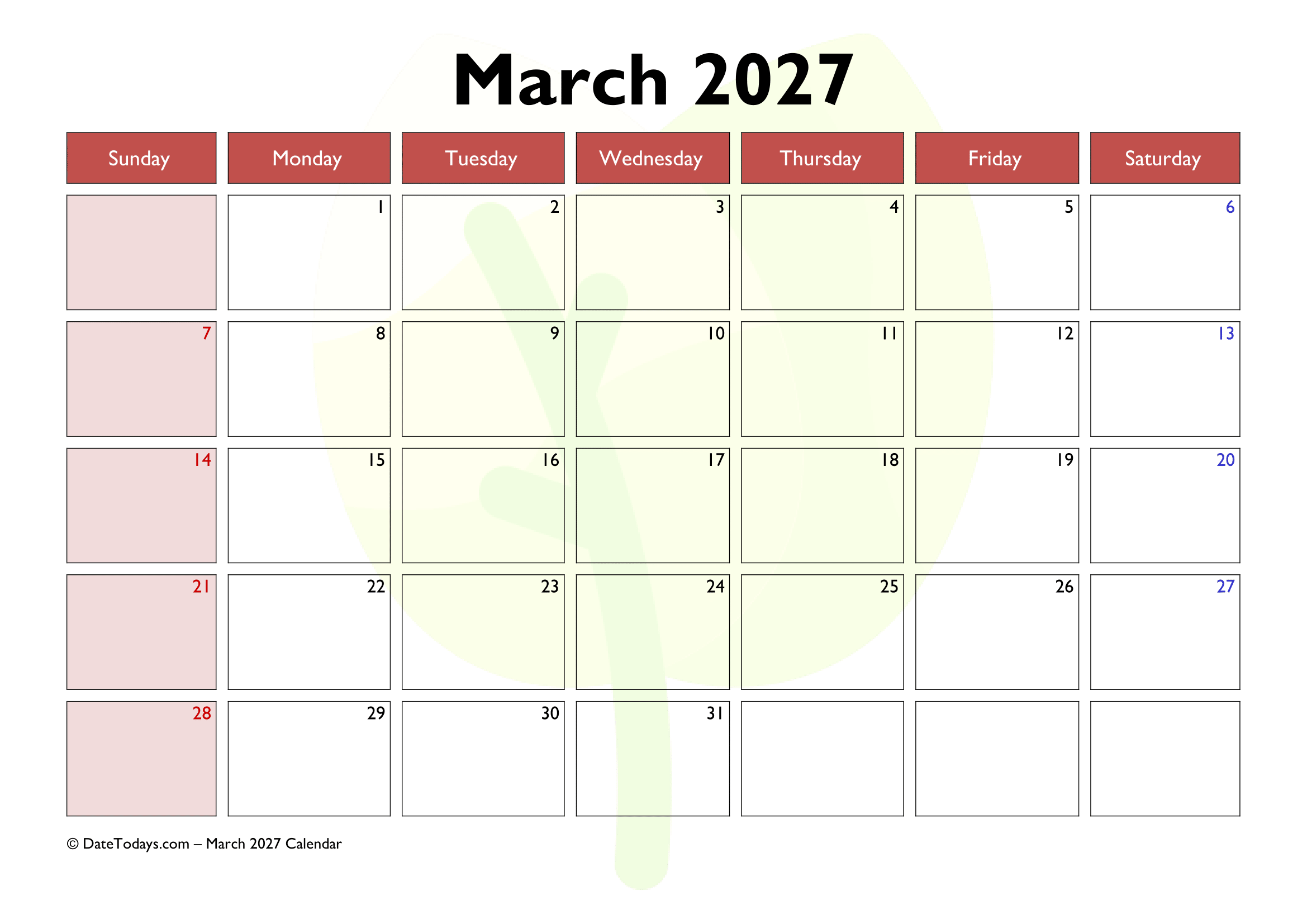 Plan your March Month in style with a March 2027 Calendar Printable PDF from our website’s including March 2027 Calendar with Holidays.