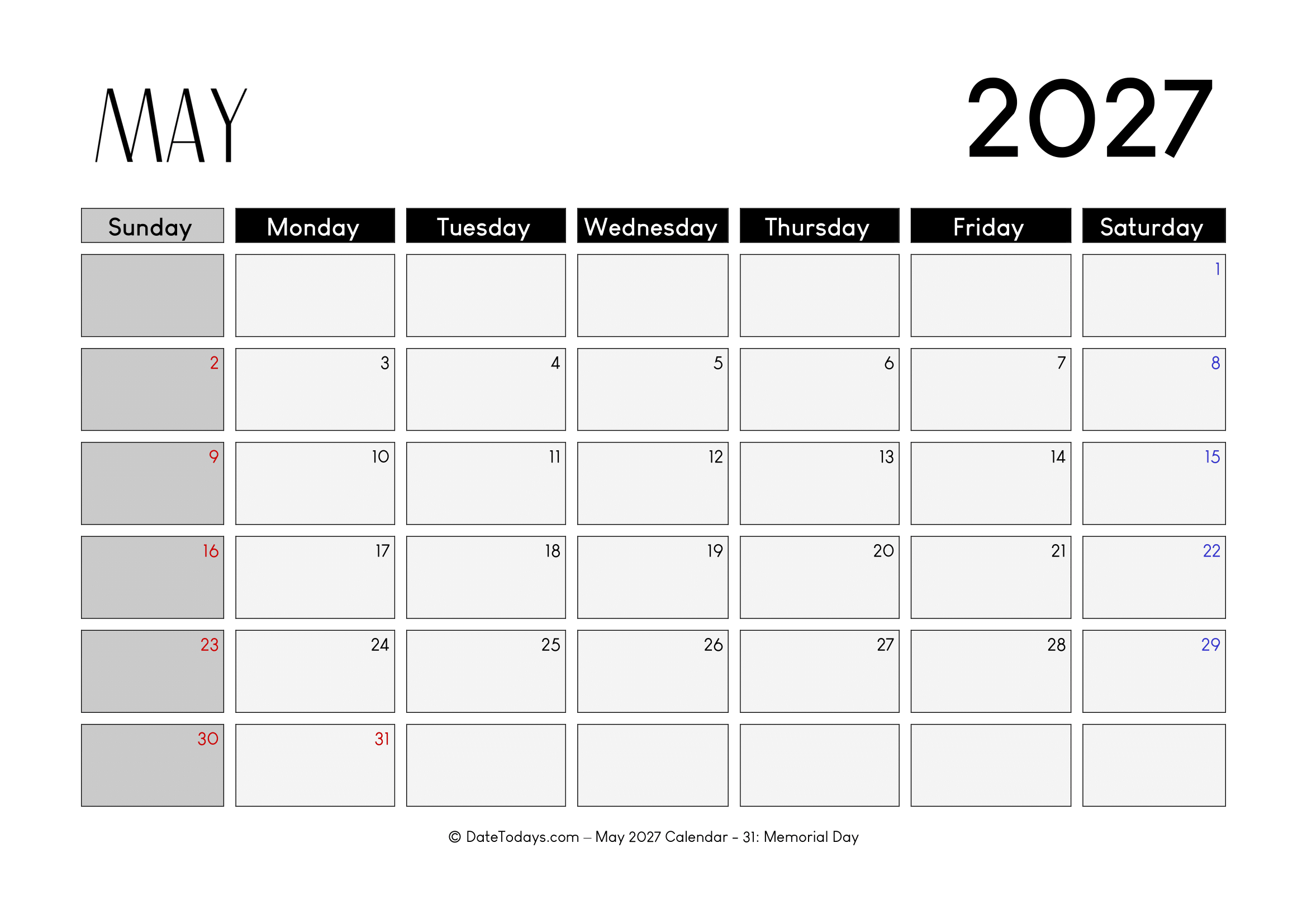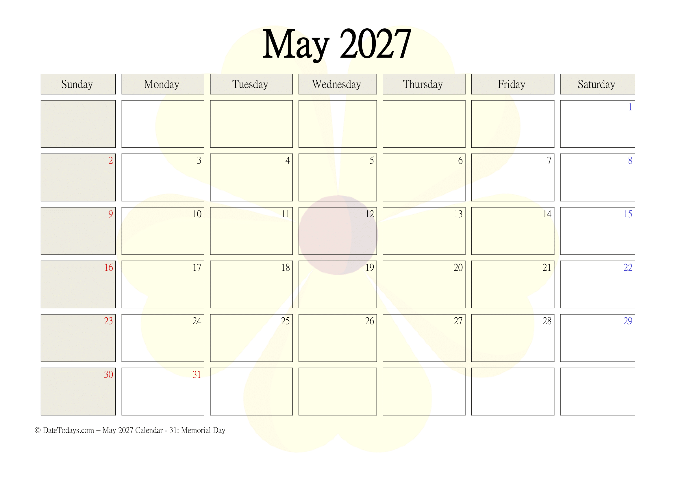 A warm welcome to our website! All of the template options for the May 2027 calendar PDF are displayed below for your convenience. Nevertheless, we have thought to provide the printable that you are going to enjoy a lot with the sleek and simple design that has been provided with plenty of space for planning out all your needs. We provide you with the May 2027 calendar printable that is ready to be downloaded and printed from our website even for the coming years. So feel free to explore a printable calendar for all the 12 months of 3 consecutive years.