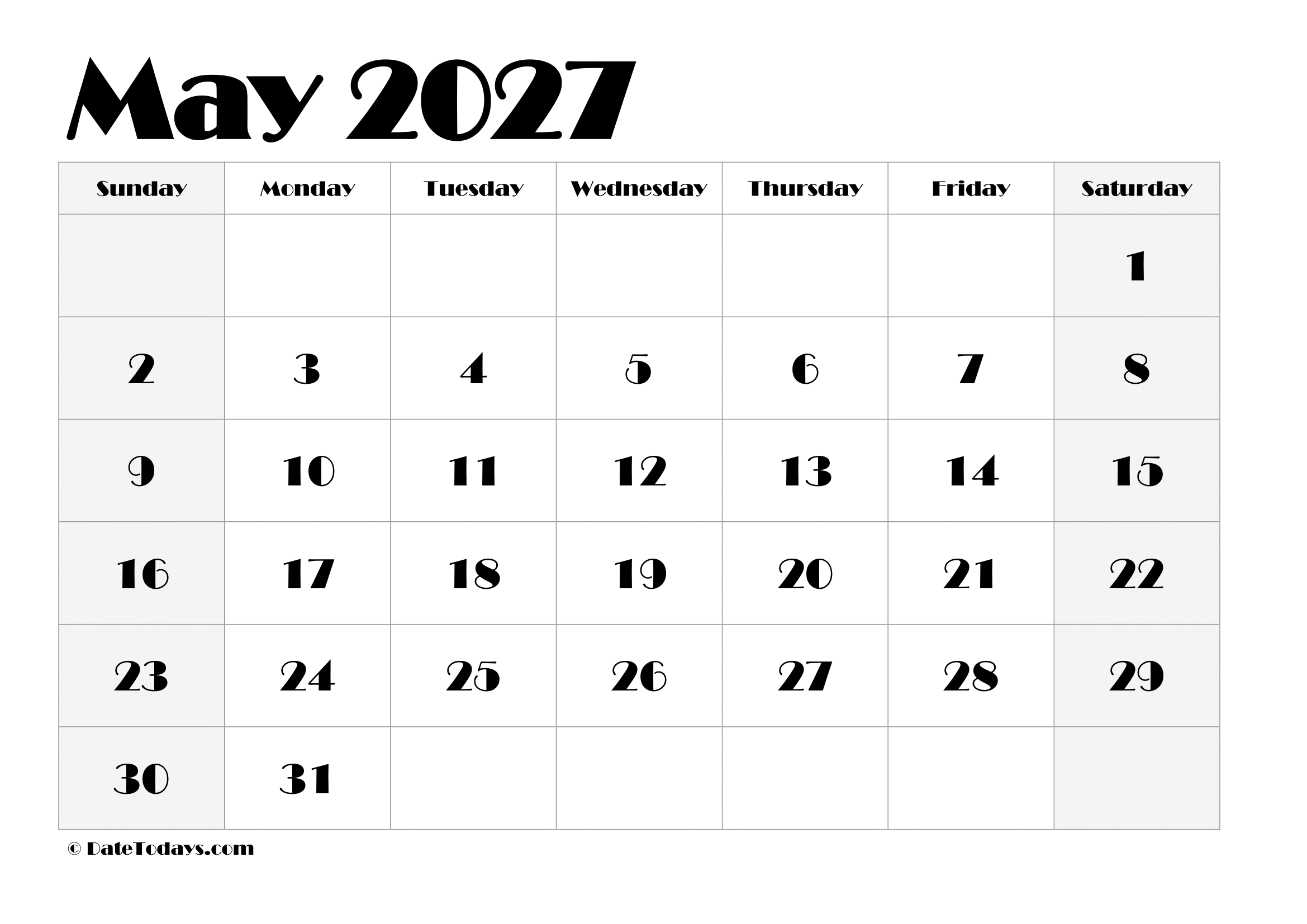 Welcome to your one-stop solution for a free printable calendar of the complete year! This printable can be yours with a single click on the button mentioned below. You can download these printable May 2027 calendar with the presence of the adobe reader or similar pdf software on your device. You can print from our website as many copies, you desire! For your better experience, we have formatted all of our calendar files which could automatically fit your basic traditional requirement of printing on 8.5″ x 11″ paper.