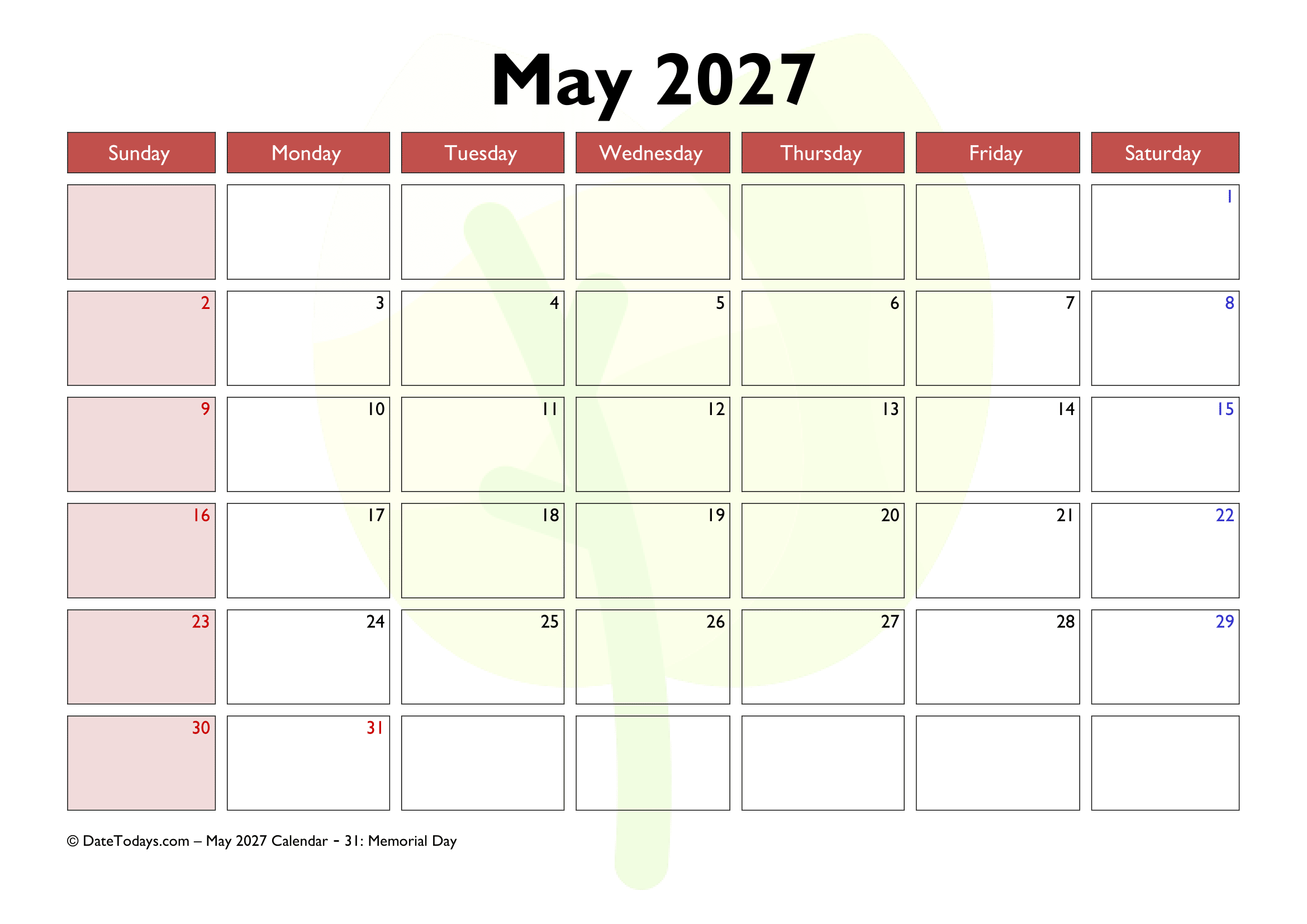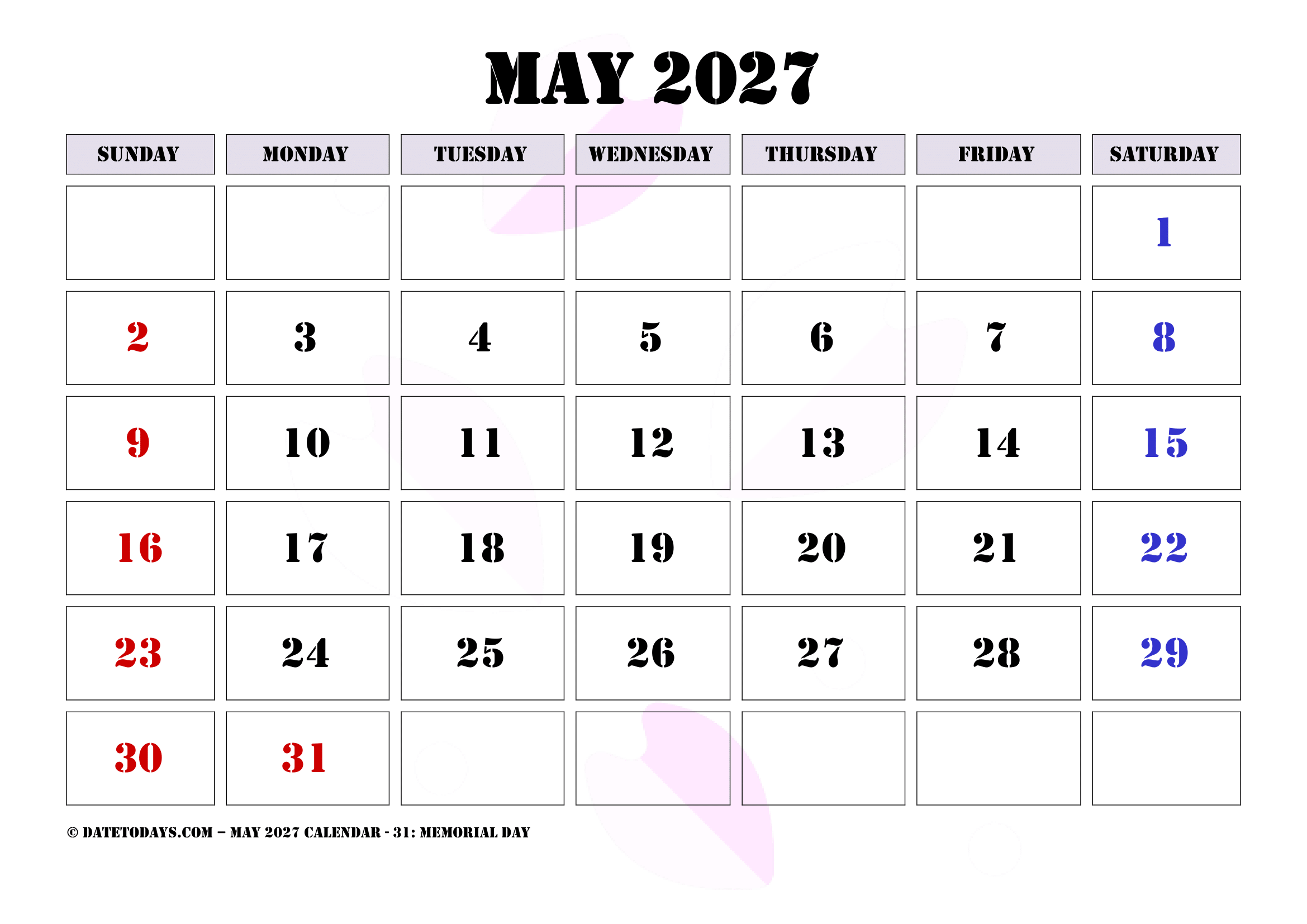 Mother’s Day is celebrated on Sunday, 9th May 2027 to honor the contribution of mothers to the family. Whereas Memorial Day is celebrated on 31th May 2027, Monday is assumed as a federal holiday in the US. On this day, people mourn the death of military personnel.