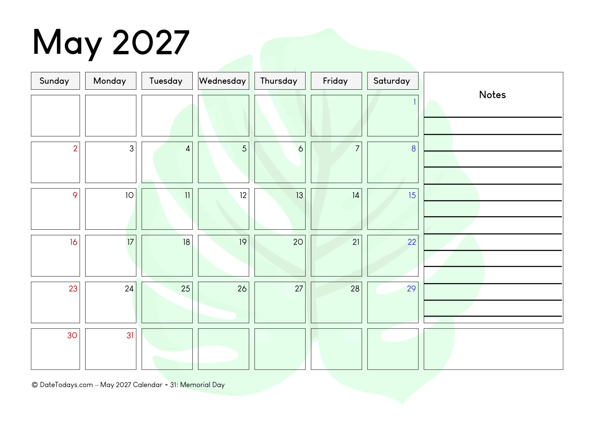 May 2027 Calendar Printable with Lines & Notes is provided with the efficient features that are useful to plan the dates, schedule, and events track the proposal.