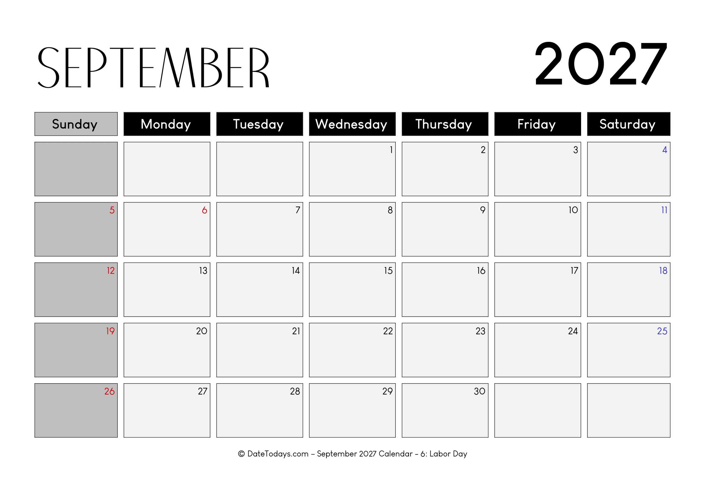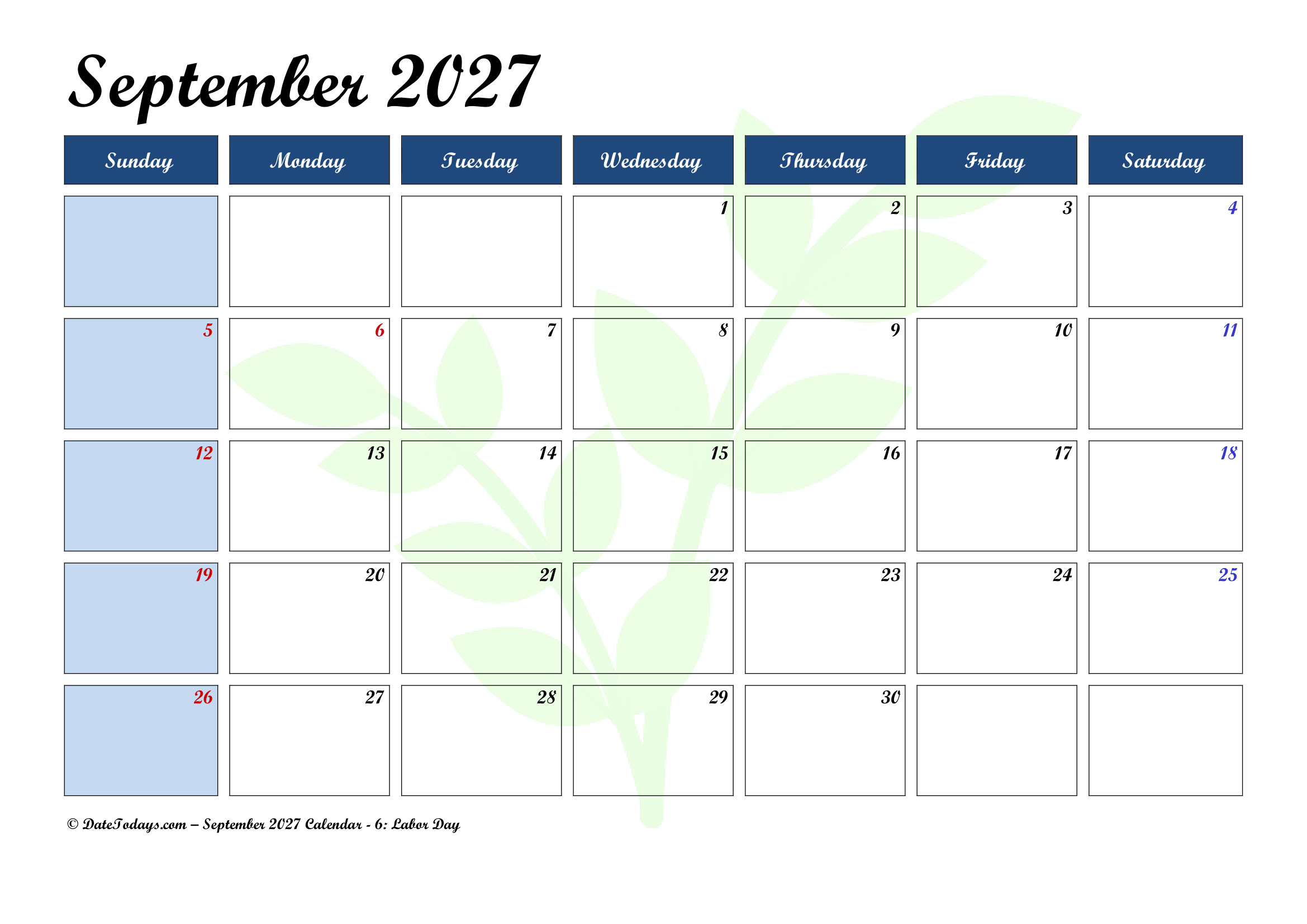 Get into the spirit of autumn with our free printable calendar templates for September 2027. These September 2027 Calendar templates are best for planning ahead for the flurry of fall activities. You can use these printable calendars templates for tracking tasks, important dates, etc. These blank calendars are just what you need to stay organized.