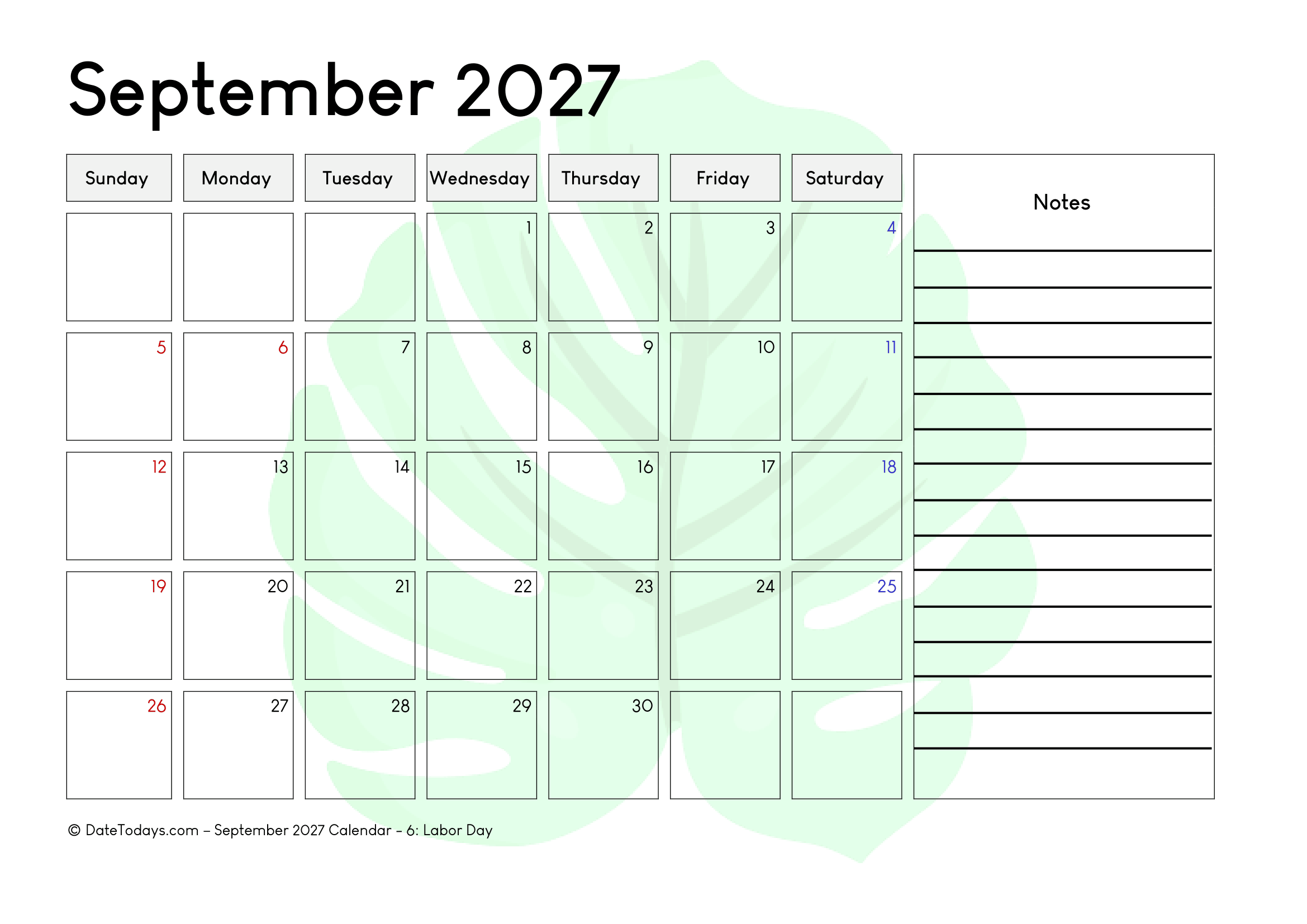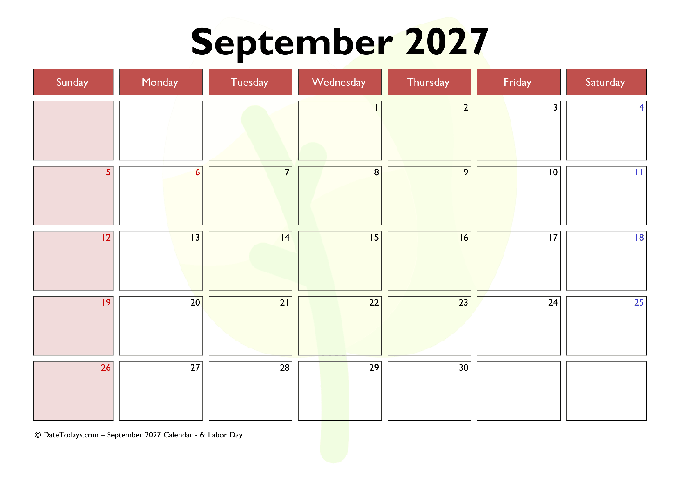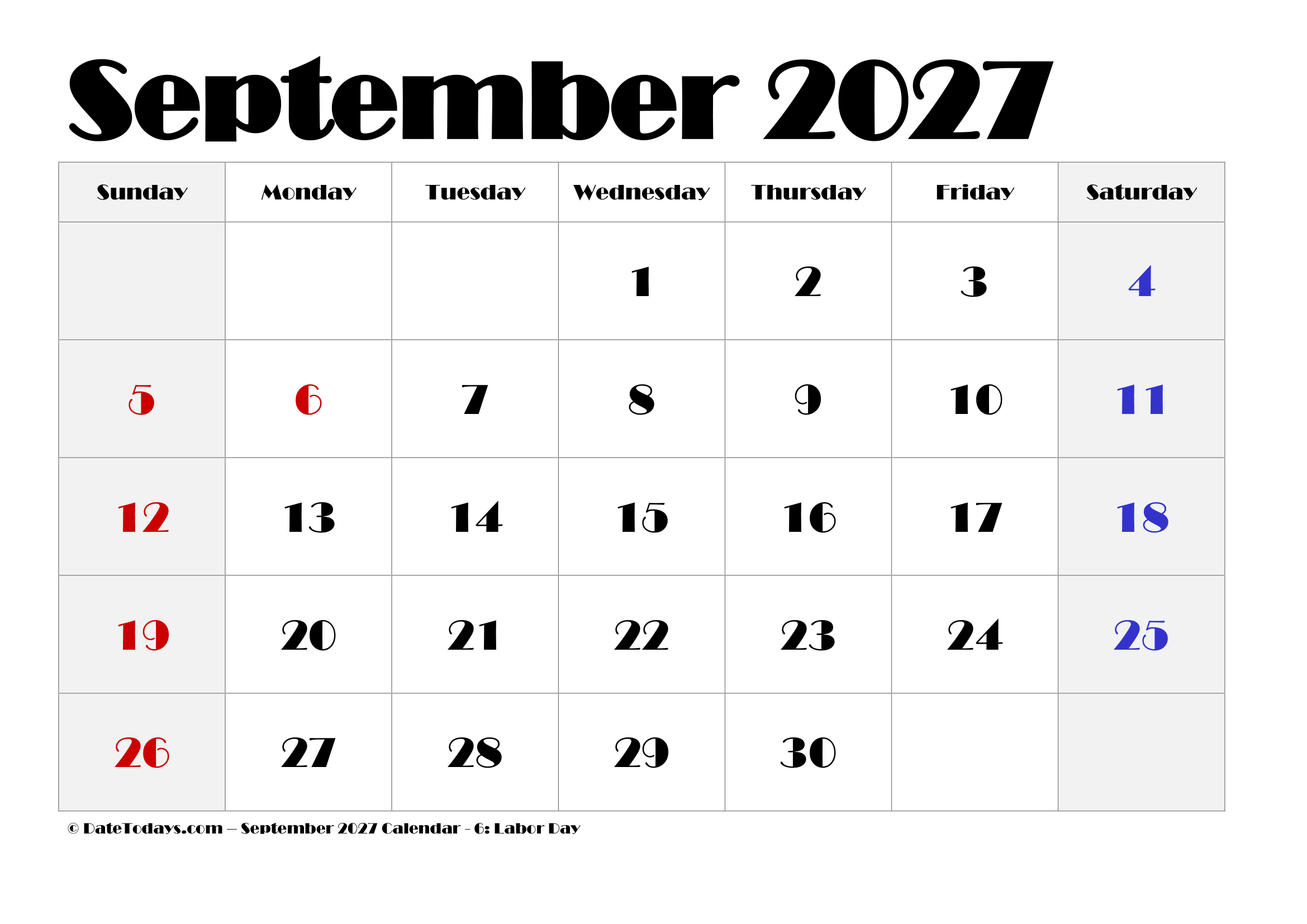 A printable calendar is considered as not the most attractive section of one’s strategy but it is found to be quite an essential ingredient to achieving success in a minimal time-frame. There several methods to attain success but the most printable calendar is considered the ideal choice because it makes one aware of what to expect and when to expect it which involves lots of planning and plotting to become more consistent and flexible. To organize the 9th month of the year, we bring forth the exclusive collection of September 2027 Calendar Printable to reduce all the hassle that may come across while achieving the target.